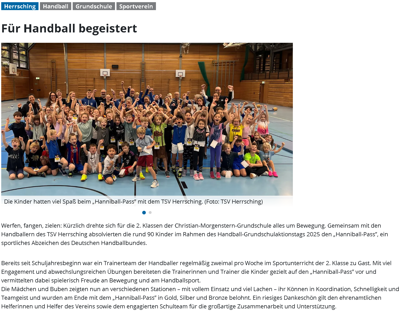 Handball-Grundschulaktionstag 2025 "Hanniball-Pass"